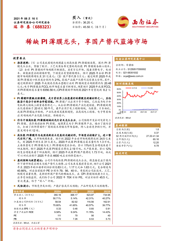 【西南证券】【20210816】稀缺PI薄膜龙头,享国产替代蓝海市场-39页