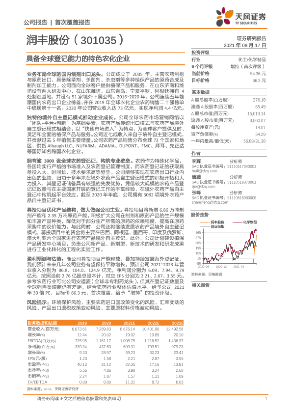 【天风证券】【20210817】20210817-天风证券-润丰股份-301035.SZ-具备全球登记能力的特色农化企业-24页