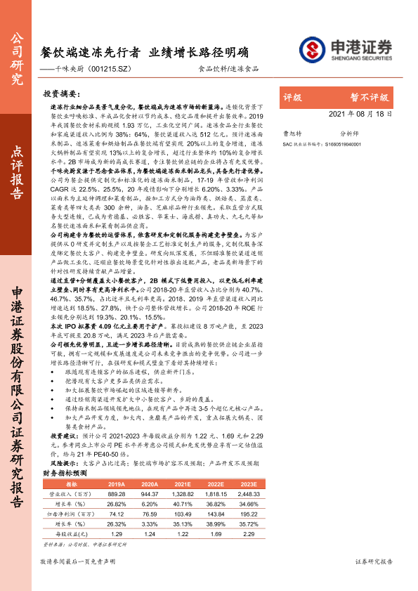 【申港证券】【20210818】千味央厨-餐饮端速冻先行者 业绩增长路径明确-31页