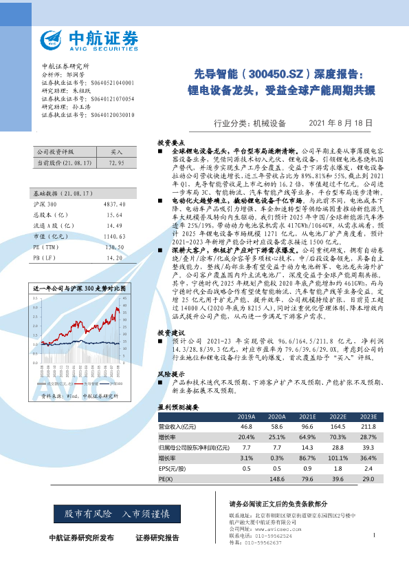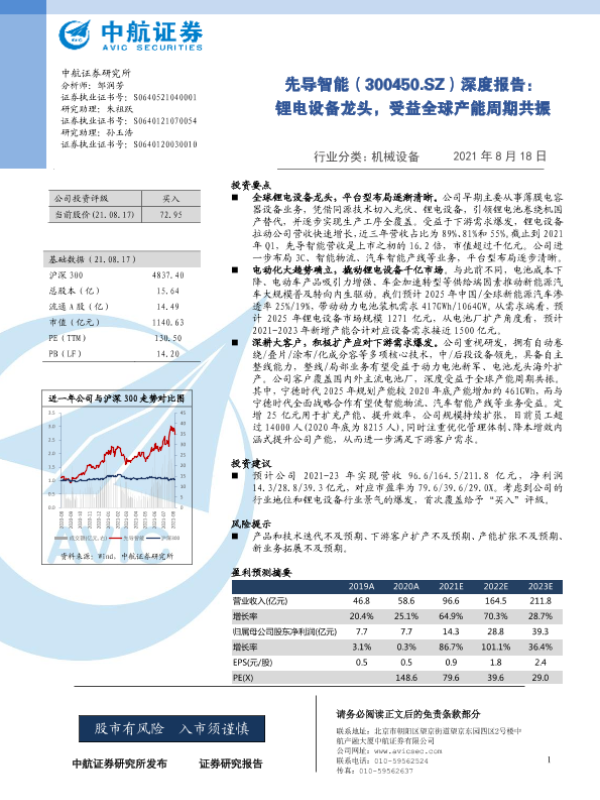 【中航证券】【20210818】先导智能:锂电设备龙头,受益全球产能周期共振-38页