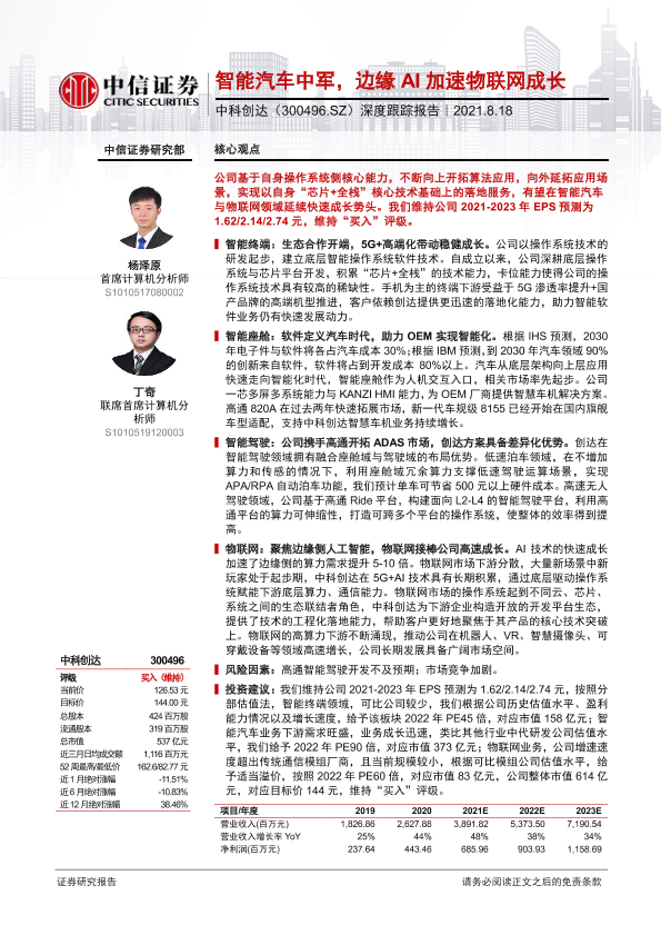 【中信证券】【20210818】20210818-中信证券-中科创达-300496.SZ-深度跟踪报告:智能汽车中军,边缘AI加速物联网成长-48页