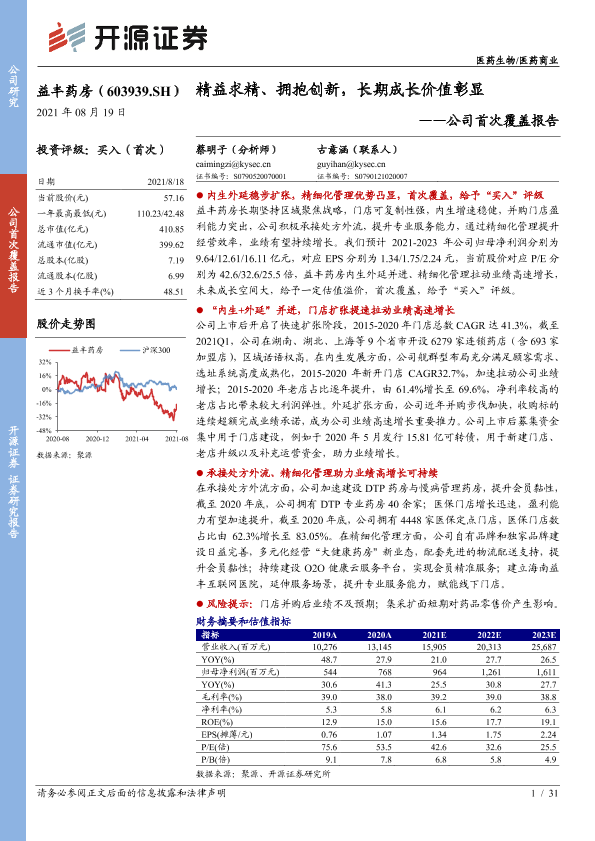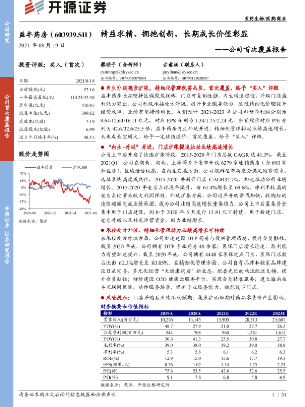 【开源证券】【20210819】益丰药房-603939.SH-公司首次覆盖报告:精益求精、拥抱创新,长期成长价值彰显-31页