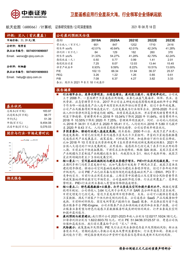 【中泰证券】【20210820】20210820-中泰证券-航天宏图-688066.SH-卫星遥感应用行业星辰大海,行业领军企业扬帆起航-23页