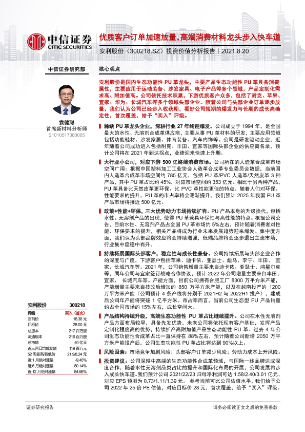 【中信证券】【20210820】20210820-中信证券-安利股份-300218.SZ-投资价值分析报告:优质客户订单加速放量,高端消费材料龙头步入快车道-25页
