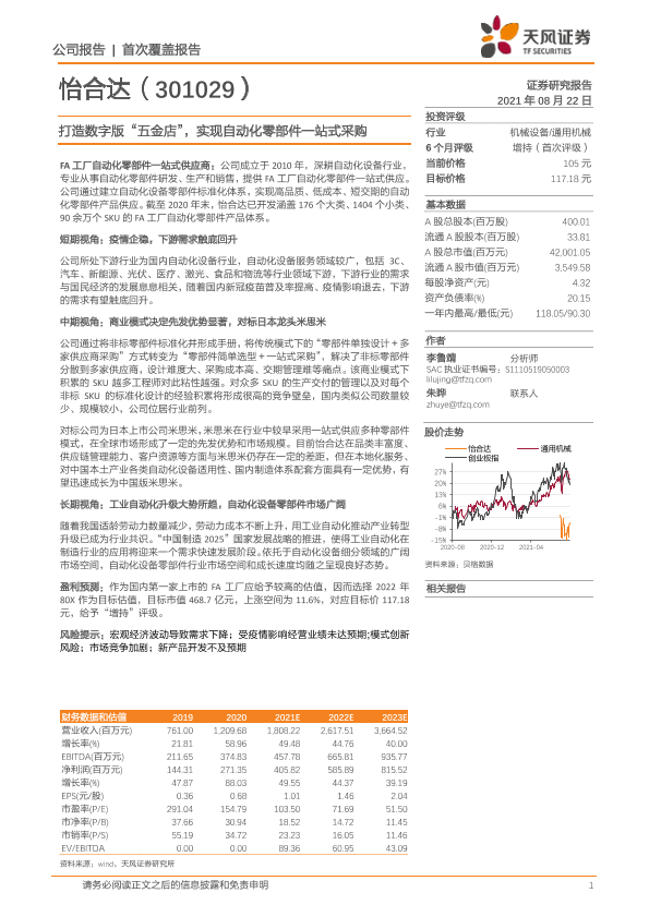 【天风证券】【20210822】20210822-天风证券-怡合达-301029.SZ-打造数字版“五金店”,实现自动化零部件一站式采购-31页