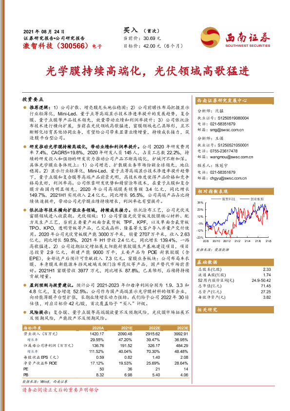 【西南证券】【20210824】激智科技-300566.SZ-光学膜持续高端化,光伏领域高歌猛进-33页