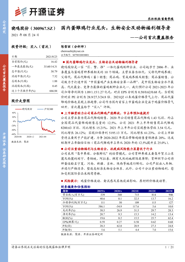 【开源证券】【20210824】晓鸣股份:国内蛋雏鸡行业龙头,生物安全及动物福利领导者-21页