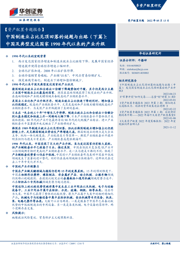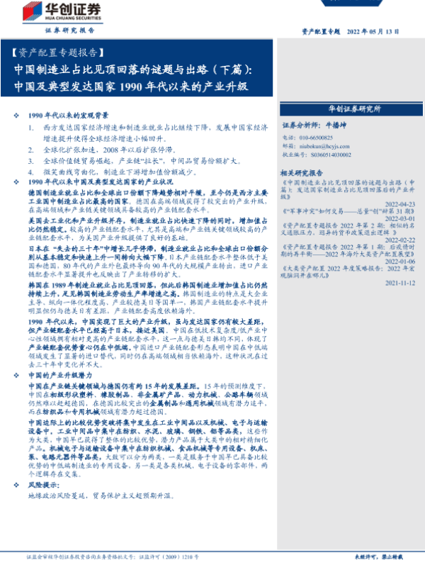 【华创证券】【20220513】中国制造业占比见顶回落的谜题与出路(下篇):中国及典型发达国家1990年代以来的产业升级-30页