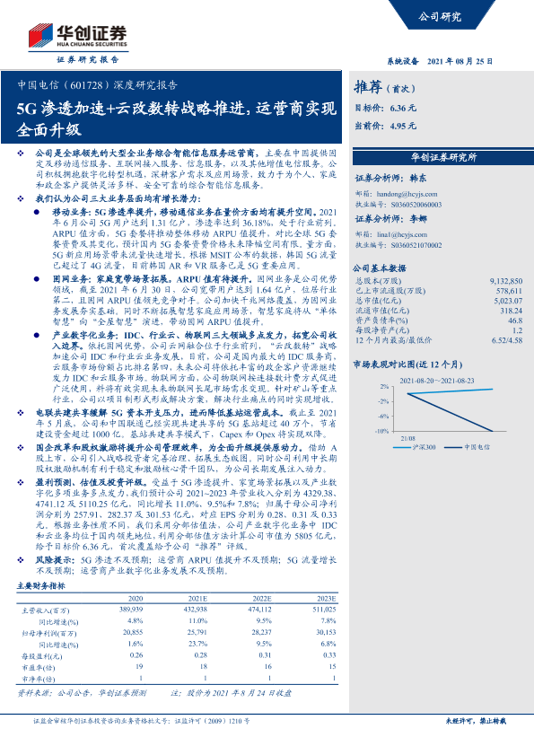 【华创证券】【20210825】20210825-华创证券-中国电信-601728.SH-深度研究报告:5G渗透加速+云改数转战略推进,运营商实现全面升级-32页