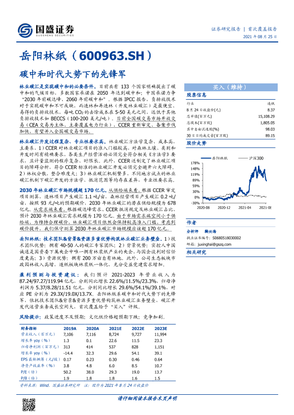 【国盛证券】【20210825】岳阳林纸-600963.SH-碳中和时代大势下的先锋军-34页