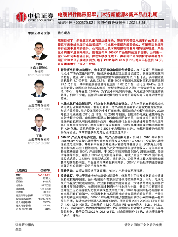 【中信证券】【20210825】长缆科技-002879.SZ-投资价值分析报告:电缆附件隐形冠军,沐浴新能源&新产品红利期-28页