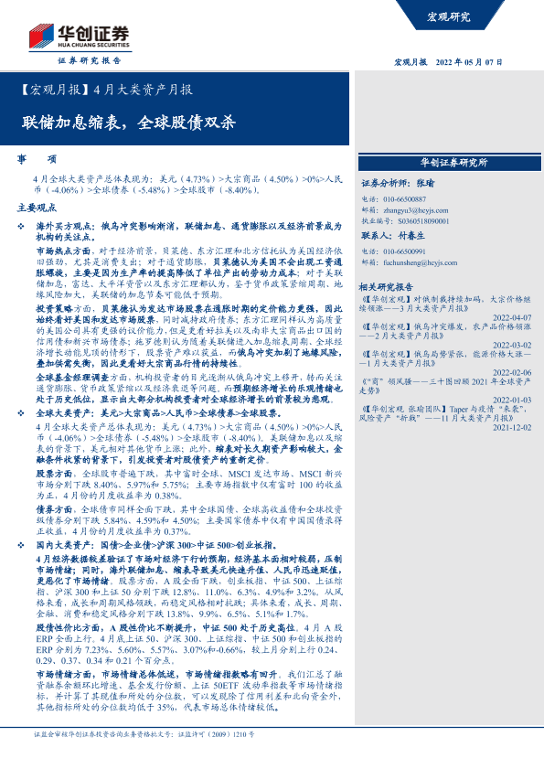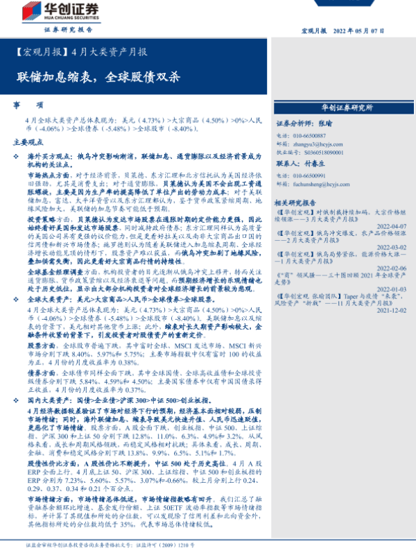 【华创证券】【20220507】4月大类资产月报:联储加息缩表,全球股债双杀-21页