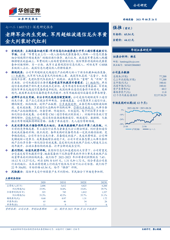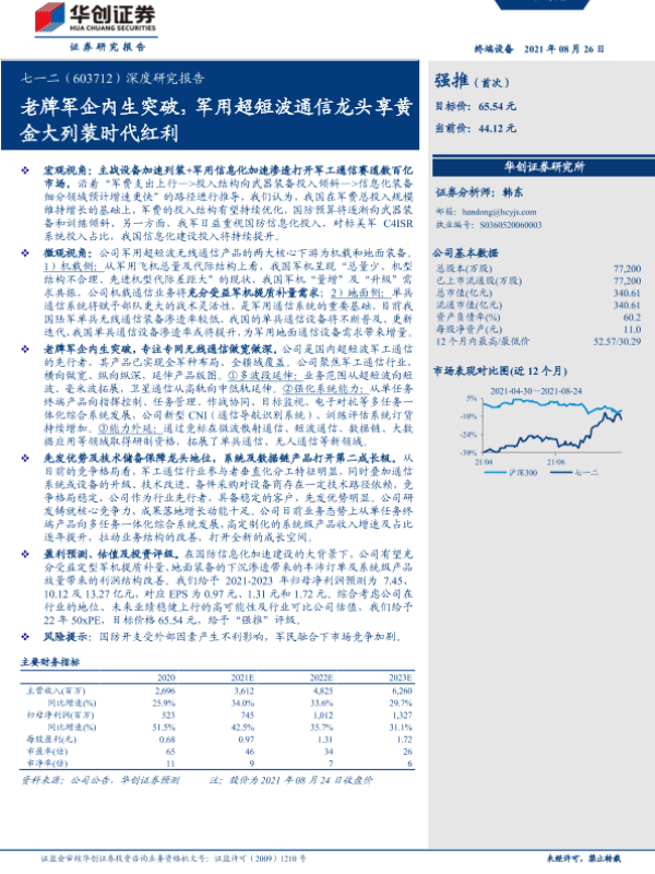 【华创证券】【20210826】20210826-华创证券-七一二-603712.SH-深度研究报告:老牌军企内生突破,军用超短波通信龙头享黄金大列装时代红利-32页