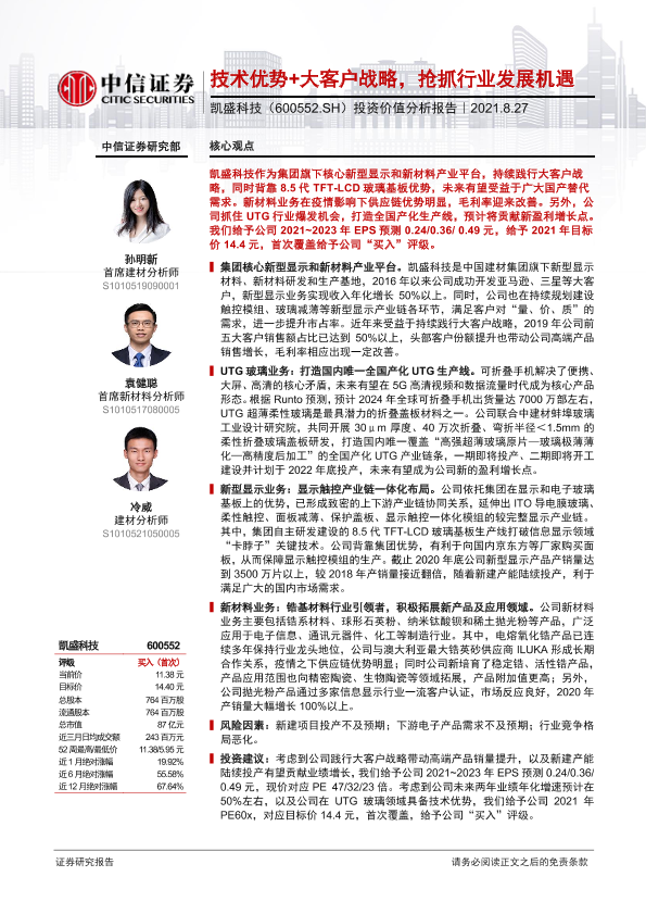 【中信证券】【20210827】20210827-中信证券-凯盛科技-600552.SH-投资价值分析报告:技术优势+大客户战略,抢抓行业发展机遇-26页