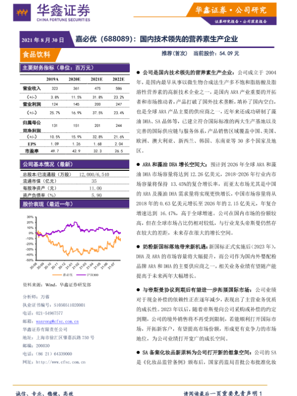 【华鑫证券】【20210830】嘉必优-688089.SH-国内技术领先的营养素生产企业-25页