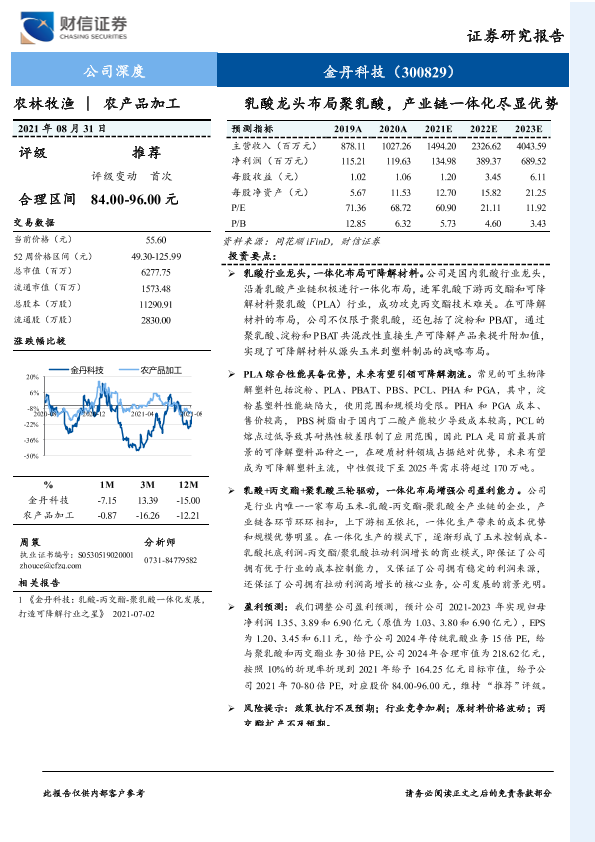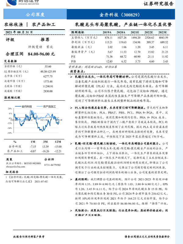 【财信证券】【20210831】乳酸龙头布局聚乳酸,产业链一体化尽显优势-26页