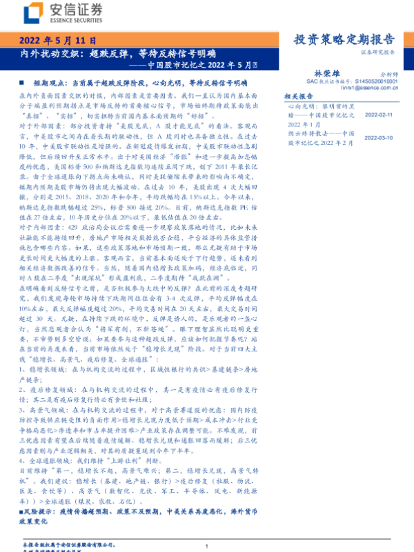 【安信证券】【20220511】中国股市记忆之2022年5月:内外扰动交织,超跌反弹,等待反转信号明确-69页