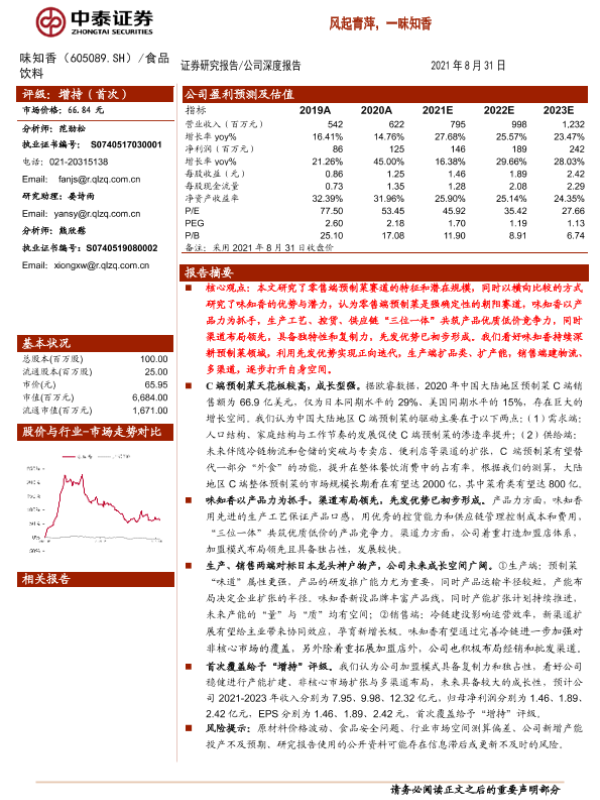 味知香 市场预测 投资建议 行业分析 预制菜