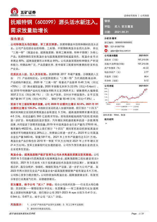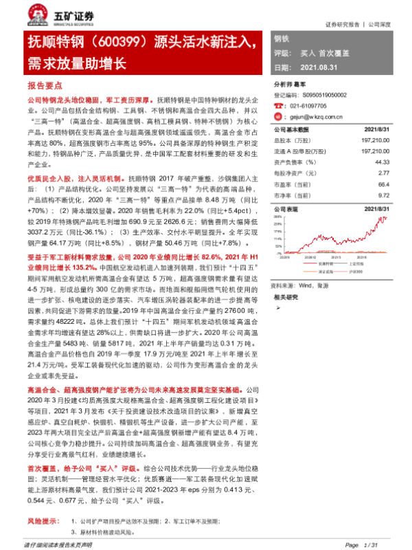 【五矿证券】【20210831】五矿证券-抚顺特钢-源头活水新注入,需求放量助增长-31页