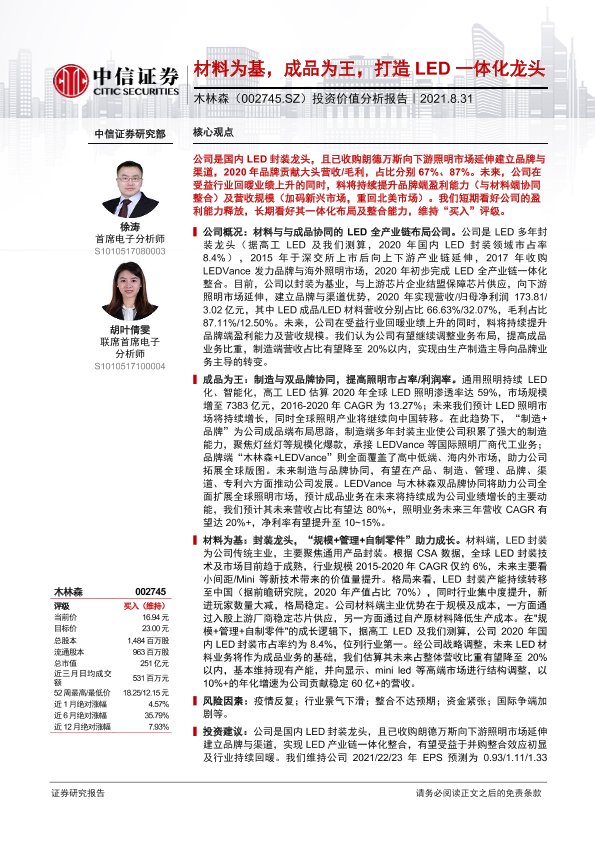 【中信证券】【20210831】20210831-中信证券-木林森-002745.SZ-投资价值分析报告:材料为基,成品为王,打造LED一体化龙头-45页