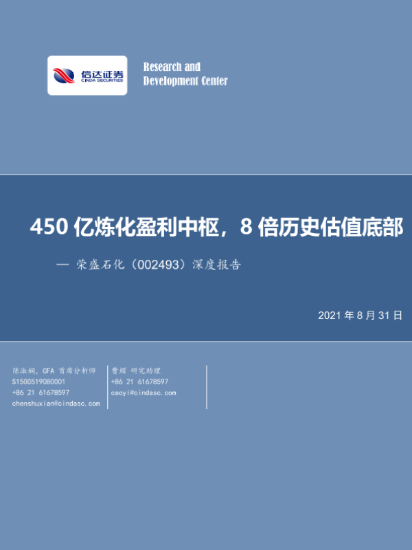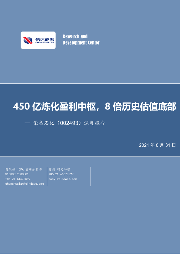 【信达证券】【20210831】450亿炼化盈利中枢,8倍历史估值底部-38页