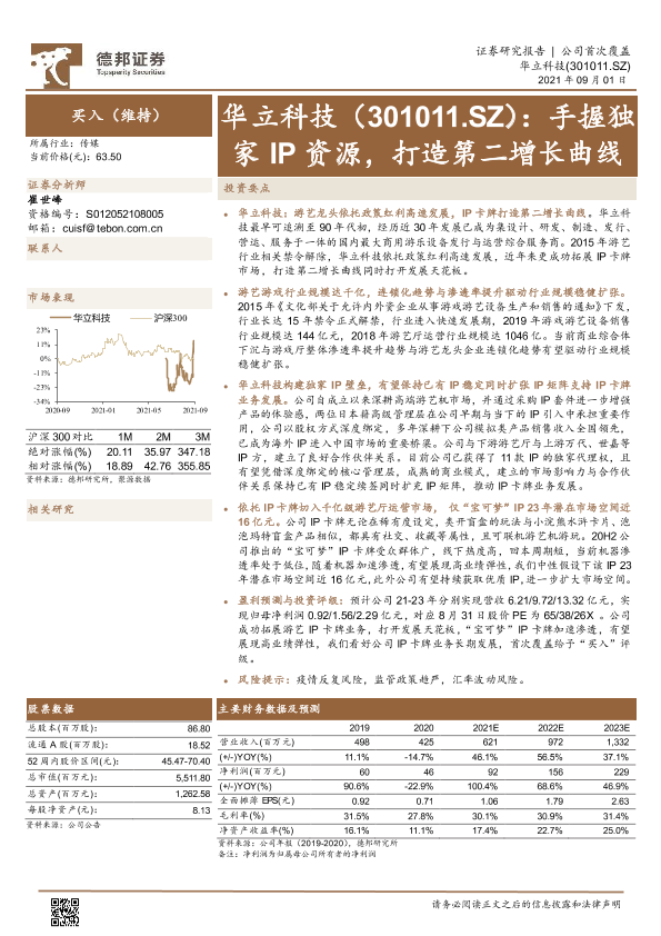 【德邦证券】【20210901】华立科技-301011.SZ-手握独家IP资源,打造第二增长曲线-27页