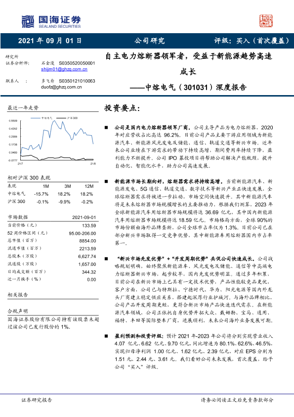 【国海证券】【20210901】自主电力熔断器领军者,受益于新能源趋势高速成长-32页