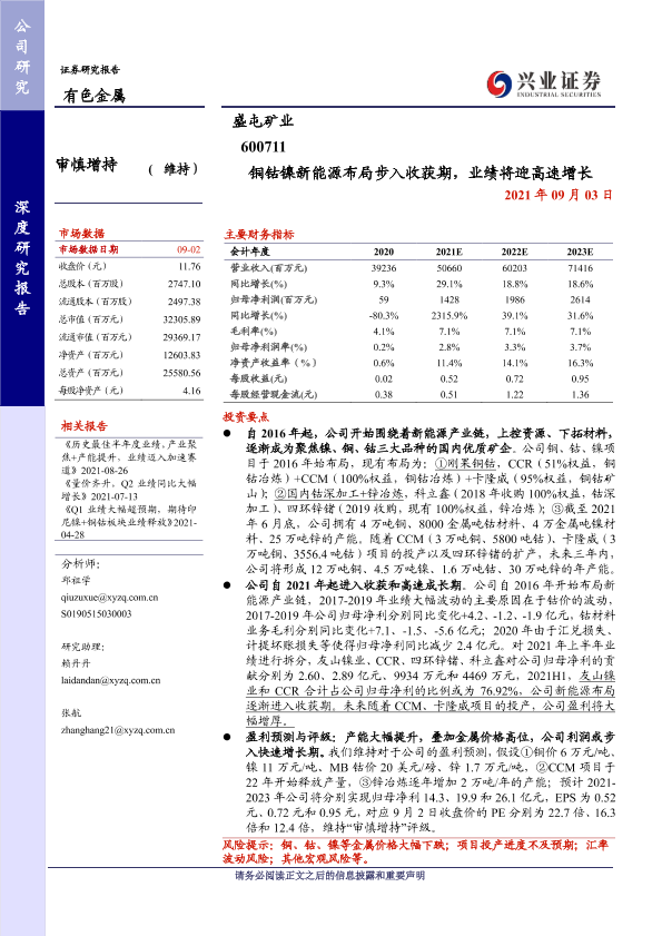 【兴业证券】【20210903】铜钴镍新能源布局步入收获期,业绩将迎高速增长-47页