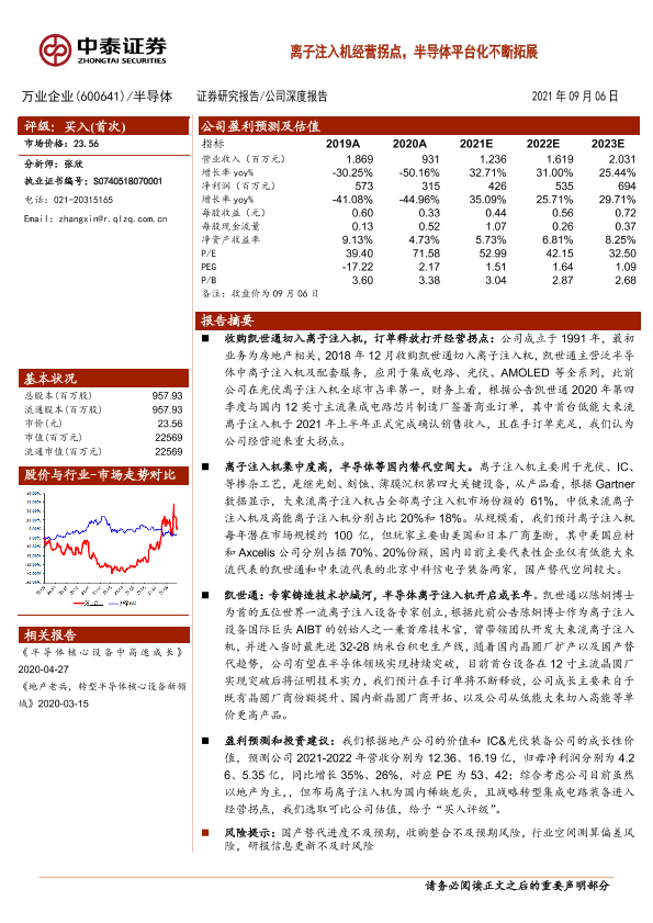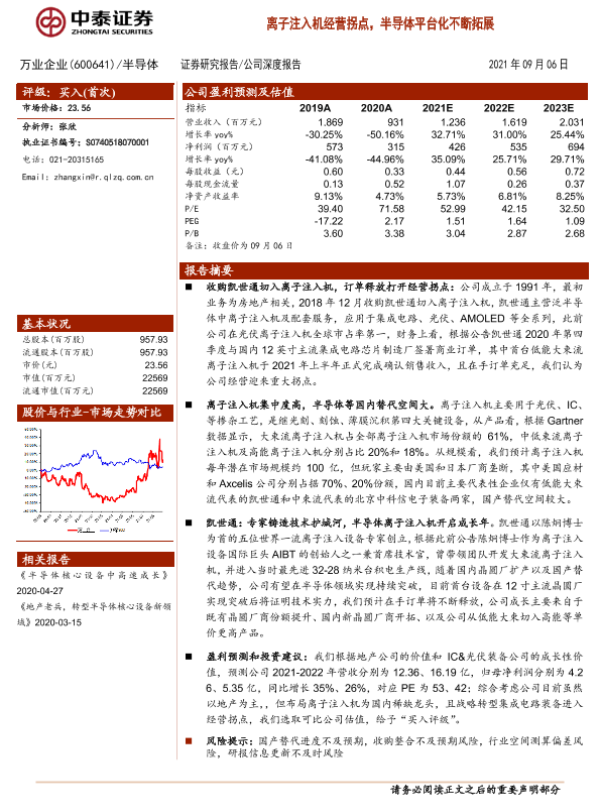 【中泰证券】【20210906】20210906-中泰证券-万业企业-600641.SH-离子注入机经营拐点,半导体平台化不断拓展-24页