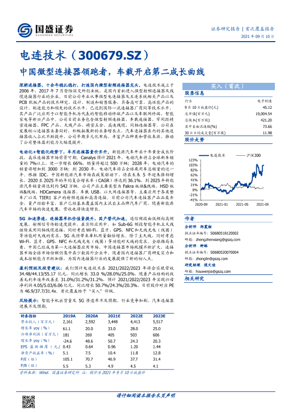 5G 微型连接器 汽车连接器 盈利预测 电连技术