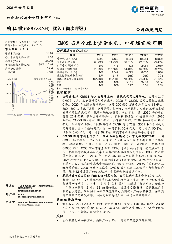 【国金证券】【20210912】CMOS芯片全球出货量龙头,中高端突破可期-32页