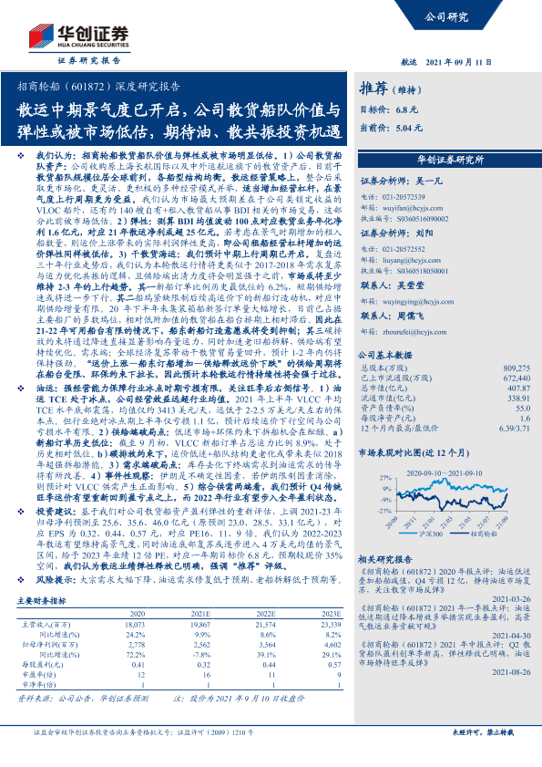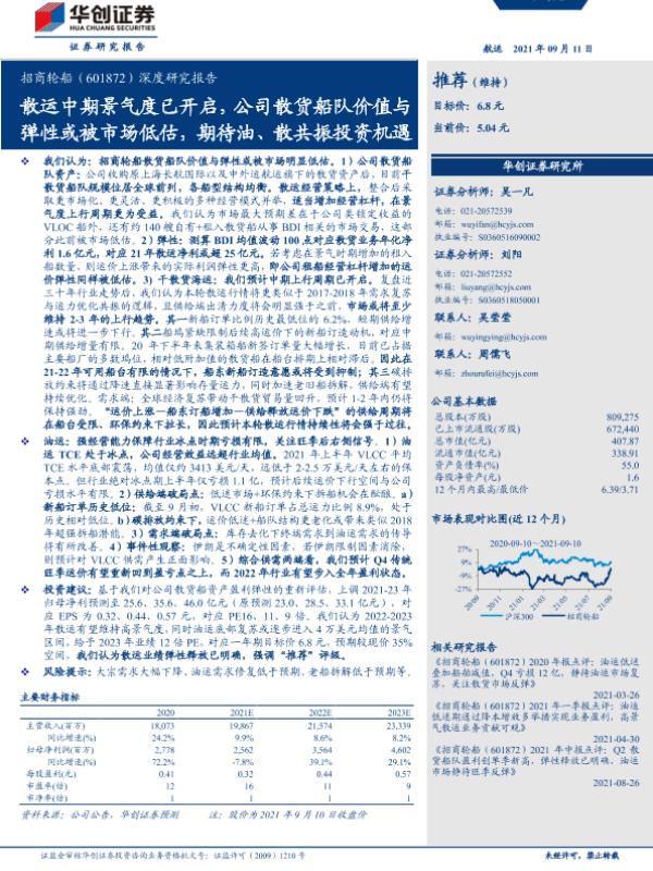 【华创证券】【20210911】20210911-华创证券-招商轮船-601872.SH-深度研究报告:散运中期景气度已开启,公司散货船队价值与弹性或被市场低估,期待油、散共振投资机遇-32页