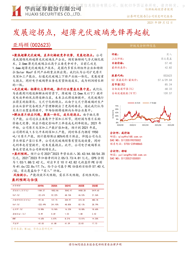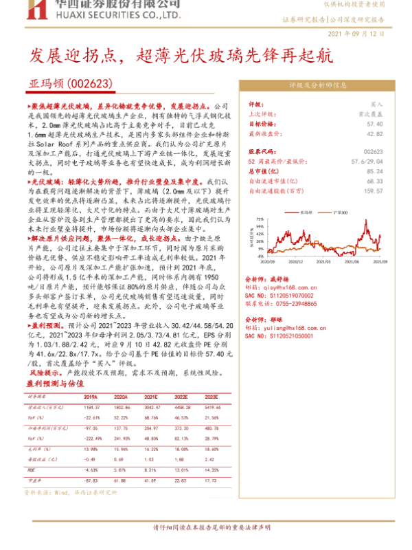 亚玛顿 光伏玻璃 华西证券 新能源 超薄玻璃