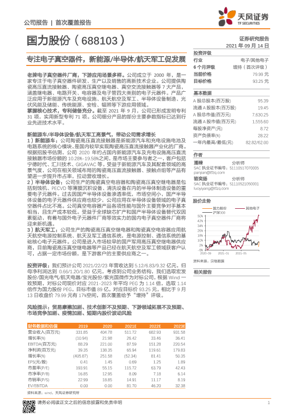 【天风证券】【20210914】国力股份-专注电子真空器件,新能源 半导体 航天军工促发展-21页