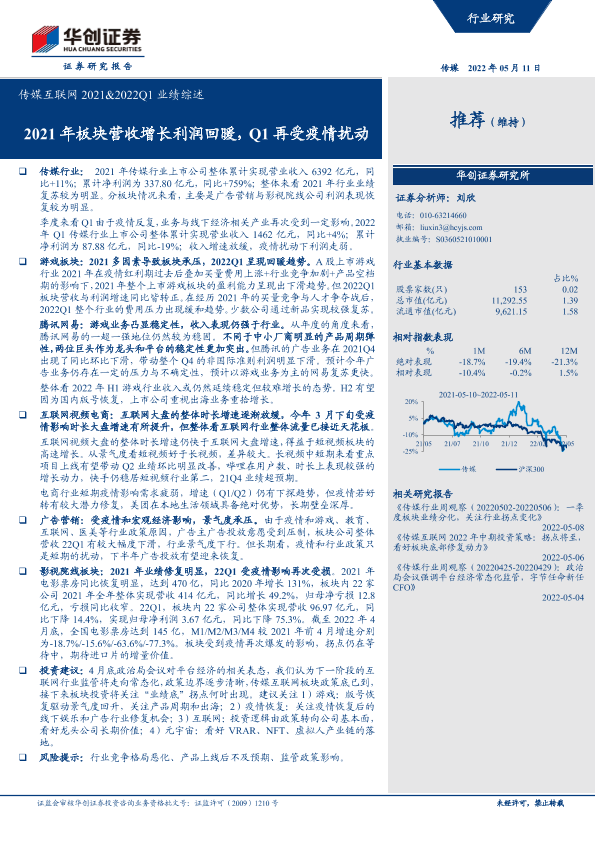【华创证券】【20220511】传媒互联网行业2021&2022Q1业绩综述:2021年板块营收增长利润回暖,Q1再受疫情扰动-46页