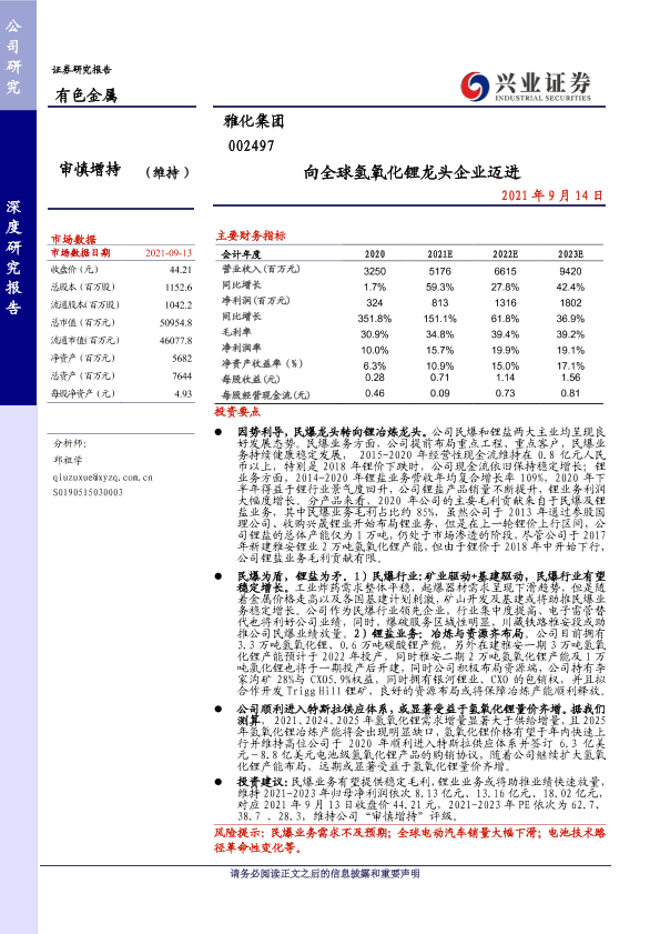 【兴业证券】【20210914】向全球氢氧化锂龙头企业迈进-43页