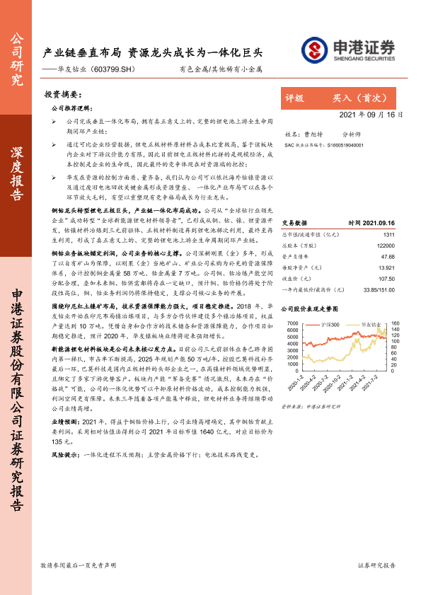【申港证券】【20210916】产业链垂直布局 资源龙头成长为一体化巨头——华友钴业(603799.SH)-35页