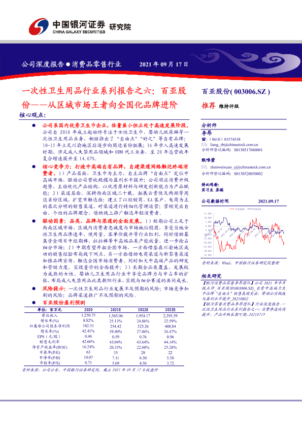 一次性卫生用品 品牌扩展 女性卫生巾 百亚股份 财务预测