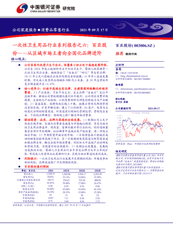 【银河证券】【20210917】一次性卫生用品行业系列报告之六:百亚股份——从区域市场王者向全国化品牌进阶-39页