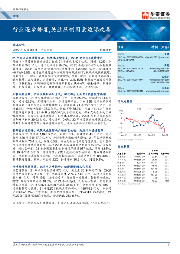 【华泰证券】【20220509】传媒行业专题研究:行业逐步修复,关注压制因素边际改善-53页