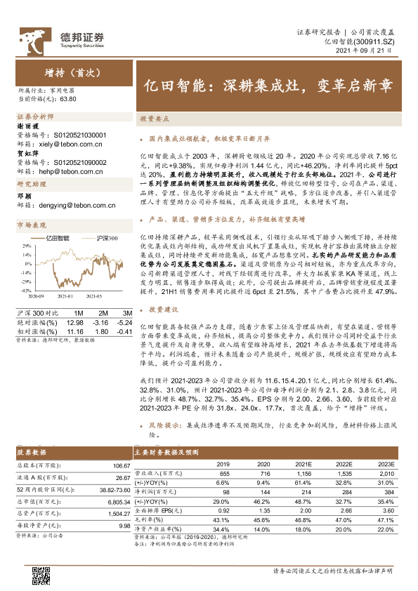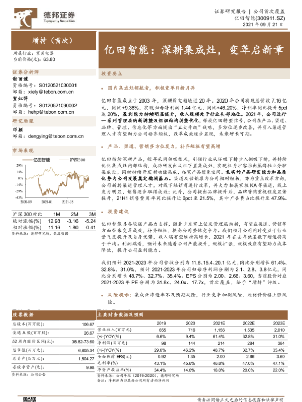 【德邦证券】【20210921】亿田智能:深耕集成灶,变革启新章-24页