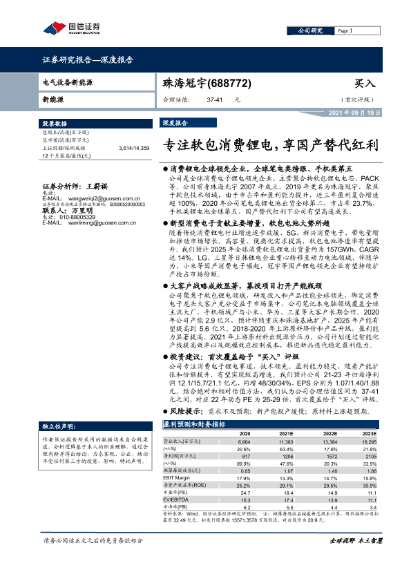 【国信证券】【20210919】专注软包消费锂电,享国产替代红利-41页