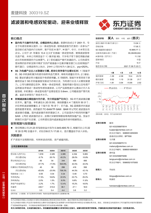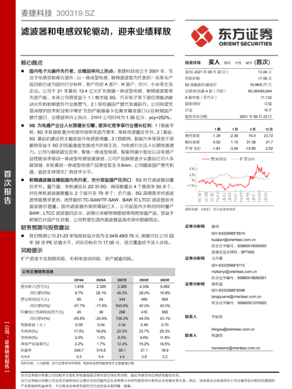 【东方证券】【20210923】麦捷科技300319.SZ滤波器和电感双轮驱动,迎来业绩释放-39页