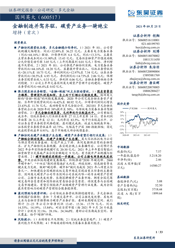 业绩分析 国网英大 多元金融 碳资产管理 金融制造