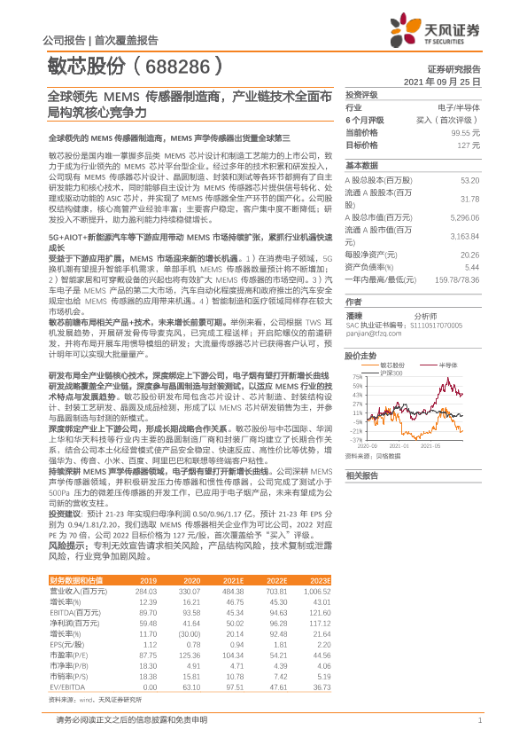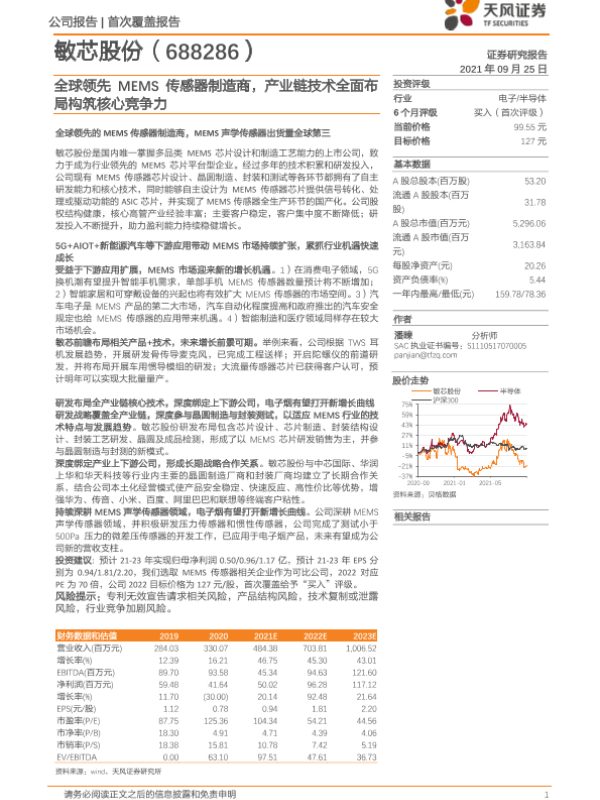 【天风证券】【20210926】全球领先MEMS传感器制造商,产业链技术全面布局构筑核心竞争力-27页