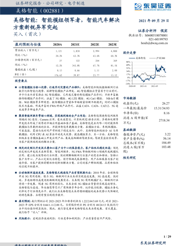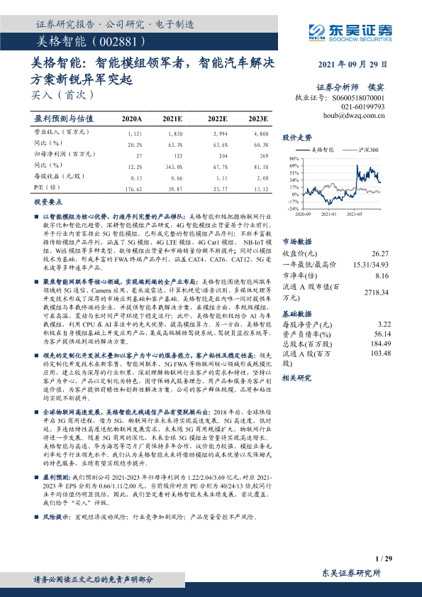 【东吴证券】【20210929】美格智能:智能模组领军者,智能汽车解决方案新锐异军突起-29页