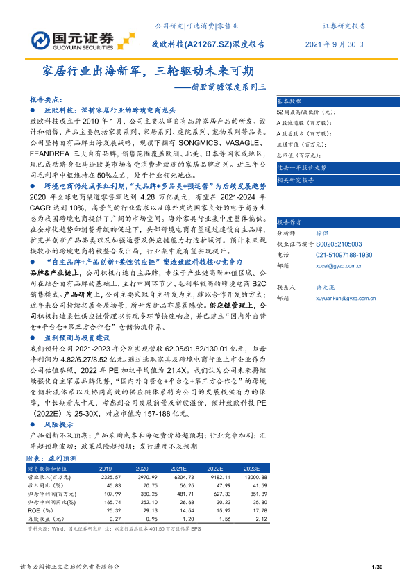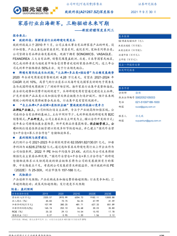 【国元证券】【20210930】致欧科技-A21298.SZ-新股前瞻深度系列三:家居行业出海新军,三轮驱动未来可期-30页