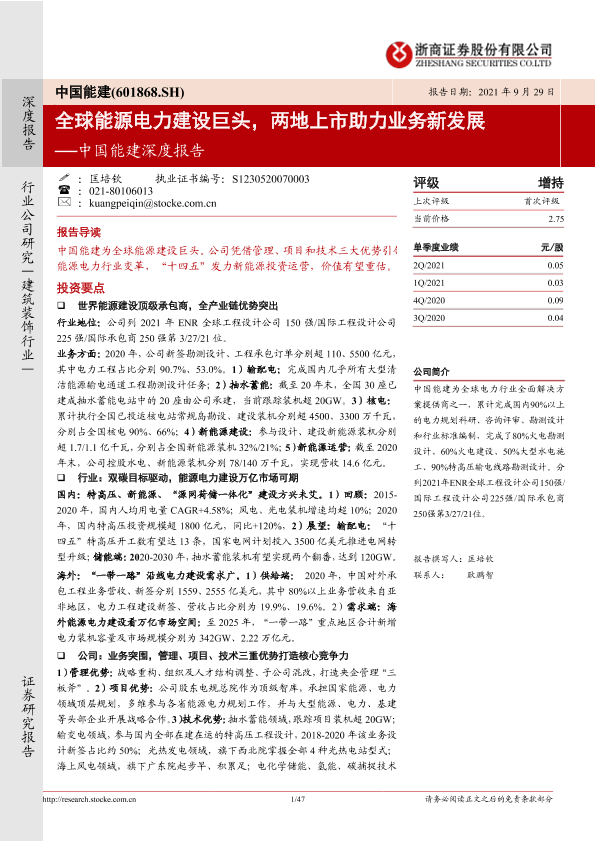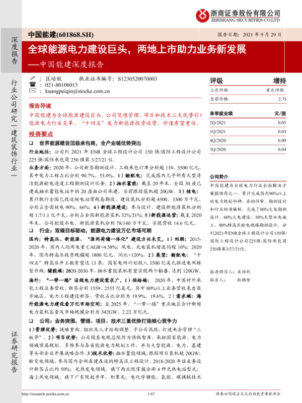 【浙商证券】【20210929】中国能建深度报告:全球能源电力建设巨头,两地上市助力业务新发展-47页