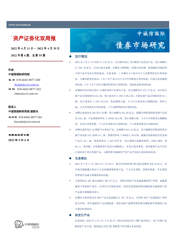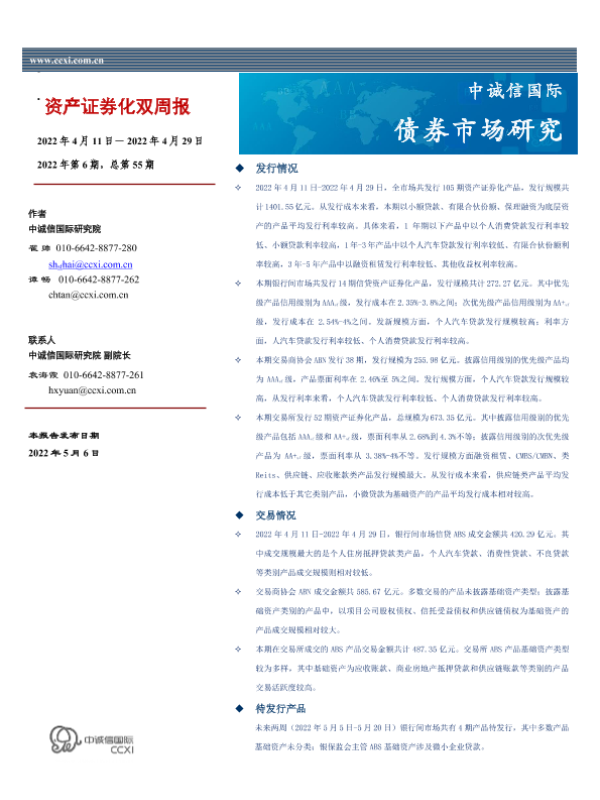 【中诚信国际】【20220506】债券市场研究:资产证券化双周报-21页
