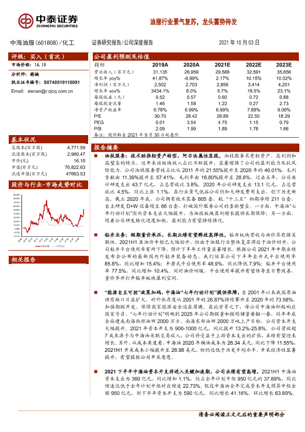 【中泰证券】【20211003】20211003-中泰证券-中海油服-601808.SH-油服行业景气复苏,龙头蓄势待发-32页
